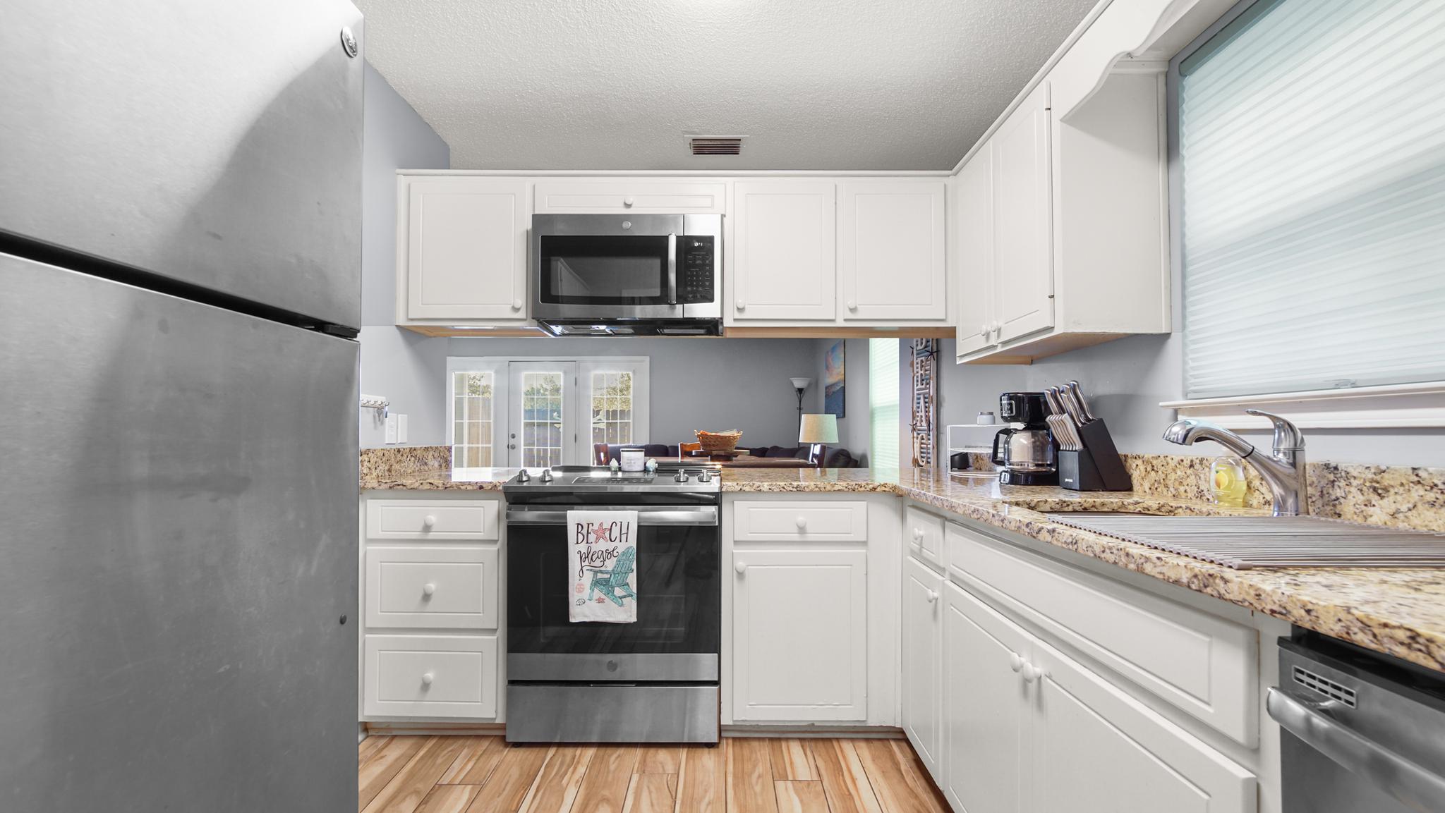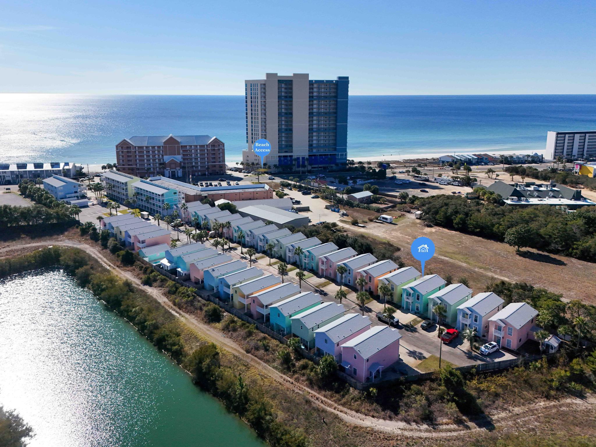 This property represents an exceptional opportunity in a prime location, making it a must-see for anyone interested in a well-maintained and updated living space. The detached townhome features two bedrooms and two and a half baths, all situated within a charming condominium complex. The interior boasts granite countertops and stainless steel appliances, complemented by easy-to-maintain tile flooring. Recent updates include new windows outfitted with custom blinds, a new hot water heater, ceiling fans, light switches, outlets, a washer and dryer, toilets, and a garbage disposal, ensuring modern convenience throughout the home. On the exterior, the property showcases fresh paint from 2022 and a new roof installed in 2019, which enhances its overall appeal and longevity. Residents can enjoy a private patio area and a delightful peek-a-boo view of the Gulf from the master bedroom balcony. This townhome is ideal for investors, full-time residents, or as a second home. Located just a mile from Pier Park on the desirable west end of Panama City Beach, it offers easy access to the beach and amenities, including two pools, a clubhouse, and close to shops, and restaurants. The HOA takes care of exterior maintenance, exterior insurance, cable, water, garbage, and lawn care, allowing you to spend more time enjoying the beach lifestyle.